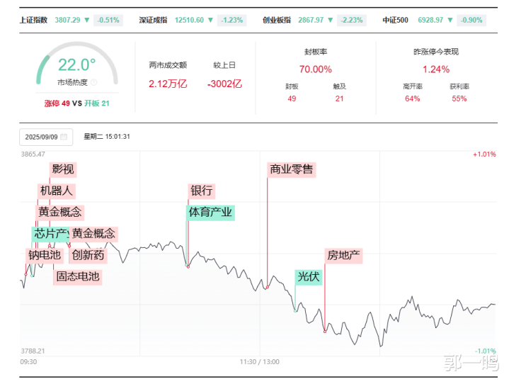 因此,下半周开始,市场将进入整理区间方向选择的关键阶段。经过两日调整与微弱反弹后,多空双方的平衡可能被打破,指数波动大概率会有所加大。向上或向下的概率相对均衡,操作难度有所提升,此时成交量的变化将成为重要指引。若下半周成交额能有效回升至2.5万亿以上,意味着增量资金开始认可当前估值,市场有望重新获得上涨动力,甚至向3900点发起冲击,这需要有具备带动性的领涨板块形成合力;若成交量持续低迷,维持在2万亿左右或更低水平,市场可能延续震荡调整,缓慢寻找更稳固的支撑位置。